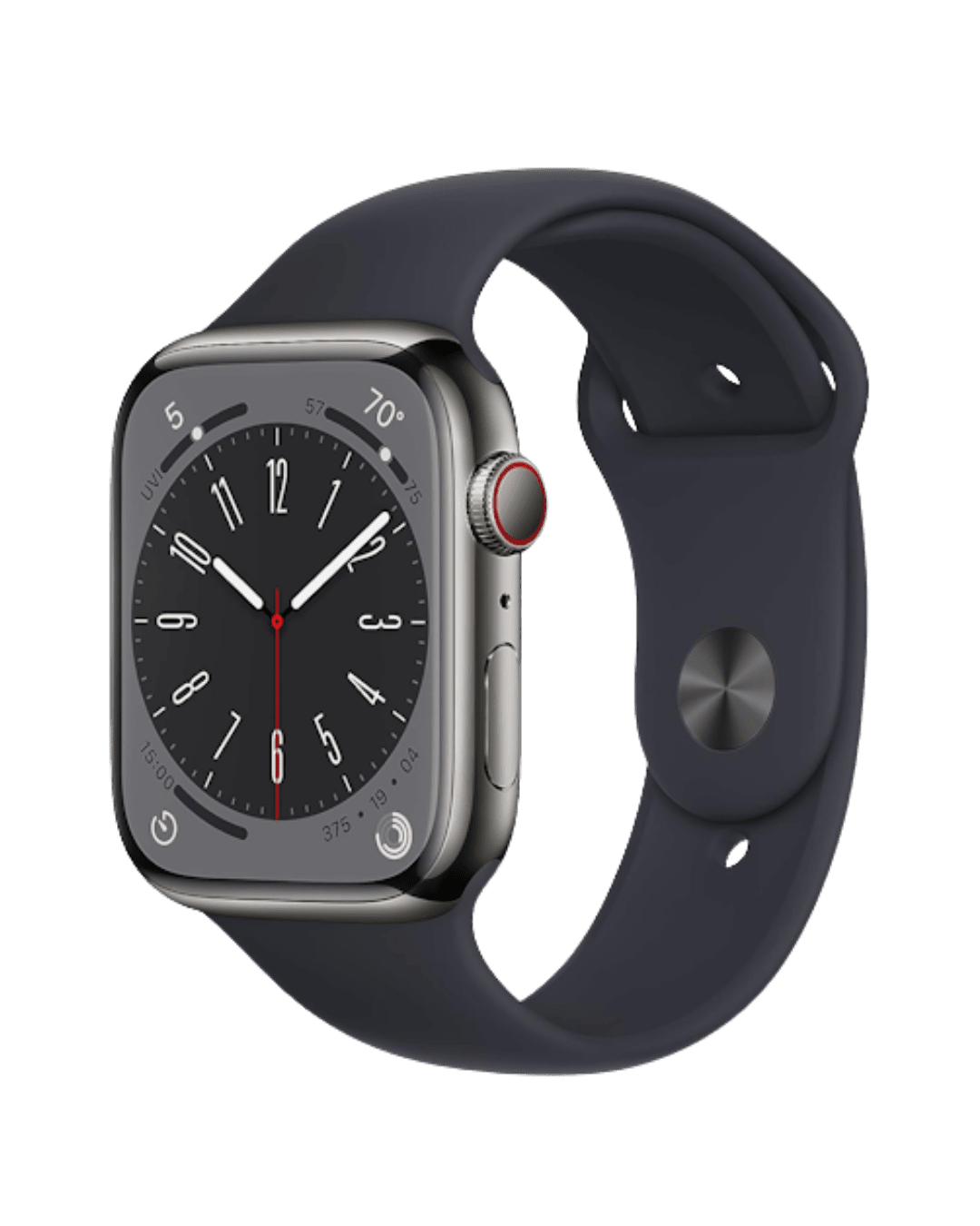 - Always-On Retina Display: The Series 8 features a large, bright Always-On Retina display, making it easier to view notifications, fitness metrics, and apps at a glance—day or night.